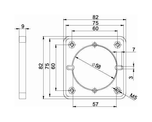 Zwischenflansch f. UP und Kabelkanalmontage geeignet für CEE-Anbausteckdosen mit Flansch 75x75 mm und Lochabstand 60x60 mm z.B.: 315-6f7 über Zwischenflansch passend zu allen handelsüblichen Kanalgeräteeinbaudosen